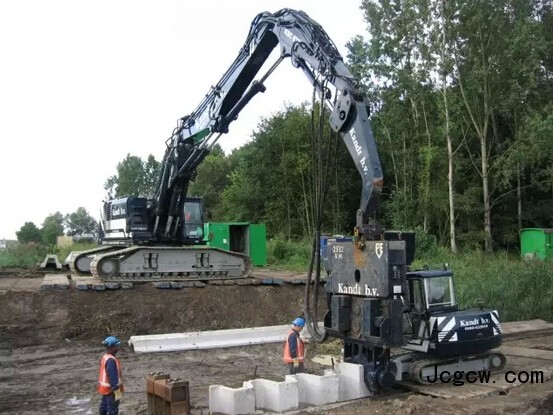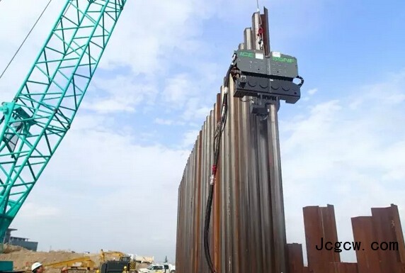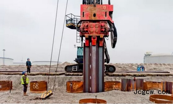 混凝土板桩!在河和航道岸边,混凝土板桩成本较低、养眼。标准强度的混凝土桩可以用液压振动锤来打,较薄的混凝土板桩很容易因共振而受损,必须采用免共振液压锤。