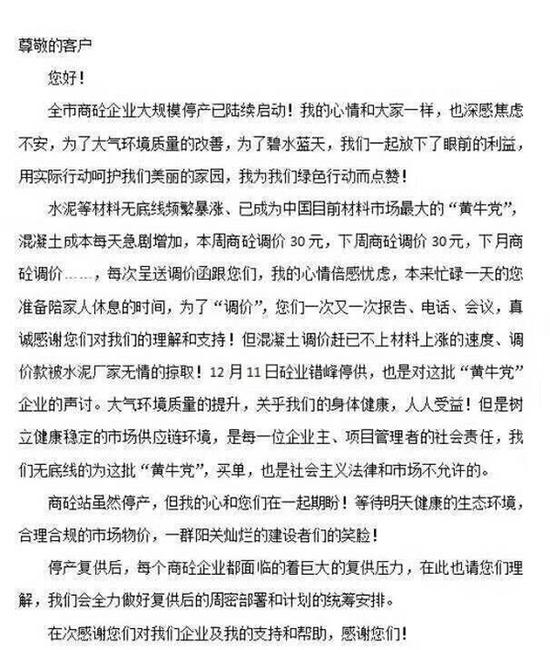 12月11日从武汉混凝土协会得知,受大气污染防治政策及原材料日益紧张的影响,武汉混凝土协会各片区会员单位自发行动,于12月11上午八点全面停工。