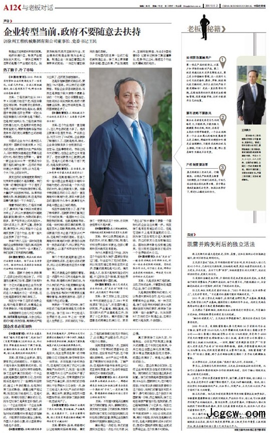 王民:不知道大家都没注意到徐工内部的管理、用人、薪酬的变化,其实我们已经做了内部改革,市委市政府对徐工有充分的信任和授权,同时也有必要的监督,使得企业在激烈竞争时代能够快速做出反应。