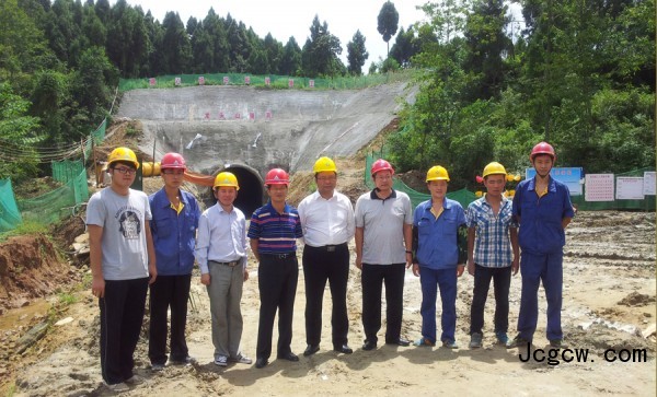孔庆华总经理在四川绵阳隧道施工现场与服务人员合影