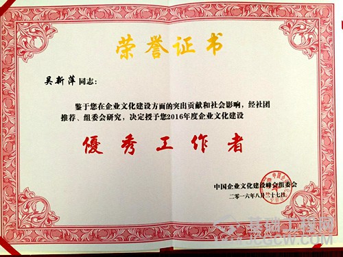 日前,以“牵手中国梦 共赢十三五”为主题的2016中国企业文化建设峰会在山西太原隆重召开。会上表彰了一批在企业文化建设方面取得优异成绩的单位和个人,中铁十四局铁正检测公司党委书记吴新萍获评中国企业文化建设优秀工作者,中铁十四局集团仅1人获此殊荣。