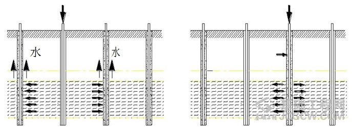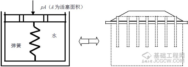 将后处理无砂混凝土桩复合地基与经典的“弹簧-活塞-水”模型比较,可以采用传统一维固结理论对其进行固结沉降、工后沉降的计算分析。