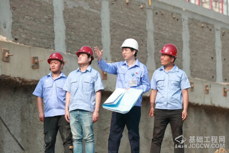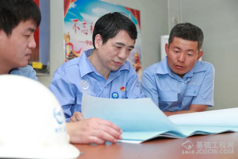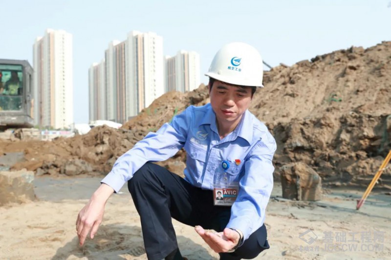 于是,他提出采用注水法,将水沿管壁慢慢注入底下,直到让现场土层水分达到地层原始状态后再继续打桩。很快,第一个地基桩顺利打好,终于保证了其后三个月抗拔桩工程的顺利进行。