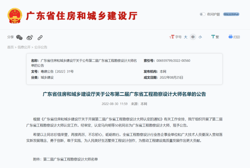2022年8月30日,广东省住房和城乡建设厅公布了第二届广东省工程勘察设计大师名单,其中广州大学建筑设计研究院有限公司总工程师、岩土勘测设计研究院院长林本海教授荣获“广东省工程勘察设计大师”荣誉。