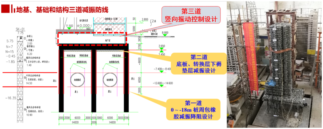系统研究了地基、基础与结构相结合的三重减振减阻降噪技术,解决了地铁上盖超高层建筑的建设难题。
