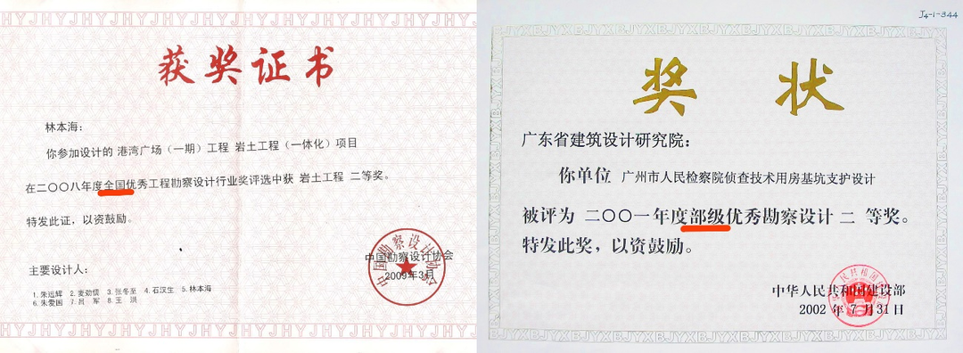先后获得全国、建设部、广东省和广州市优秀勘察设计奖20余项,其中全国和建设部优秀勘察设计奖4项、省优秀勘察设计奖9项。