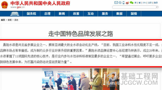中国政府网转载《经济日报》对品博会的报道文章:《走中国特色品牌发展之路》。其中,晨阳水漆作为绿色自主品牌代表被点名。此外,凭借环保利器水漆,晨阳还登上了央视《新闻联播》及《中国新闻》。