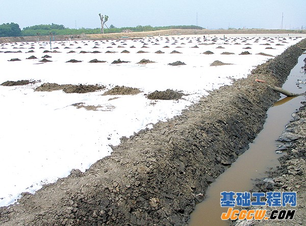 4)袋装砂井、塑料排水板:砂的规格、质量、砂袋织物质量和塑料排水板质量必;砂袋和塑料排水板下沉时不得出现扭结、断裂等现象;井(板)底标必须符合设计要求,其顶端必须按规范要求伸入砂垫层。