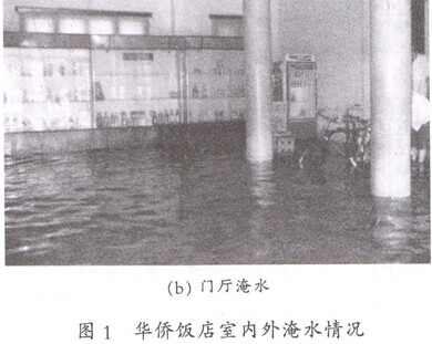记得第一次去温州时,入住刚建成开业不久的鹿城饭店。走近该饭店,但见其外墙窗口下多有八字裂缝,而其门厅地面则低于人行道面约两级台阶。第二次去温州时入住建成较早的华侨饭店。当晚下雨,次晨下楼但见大堂已满堂淹水(见图1)。上述印象至今历30余年而记忆犹新。