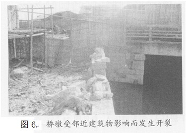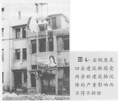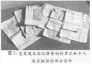 自1970年代后期开始,温州由于旧城改造和经济发展的需要,成片的住宅、商业用房、办公楼及轻工厂房相继兴建,建筑物的层数逐渐增加,新的街区次第形成。而与此同时,伴随而来的是不少建筑物产生了过量的沉降和差异沉降,墙体裂缝几成常事,有的建筑物发生下沉倾斜,造成了近旁道路开裂塌陷,或影响相邻新老建筑物的正常使用或危及安全,有的受影响的工厂甚至长期不能恢复生产。而为处理此类因建筑物下沉而引起的问题或纠纷,温州市建委等有关部门牵扯了很大的精力。温州的软土地基处理的技术问题,已演变成了影响市民生活和生产的一个社会问题(见图4~图7)。