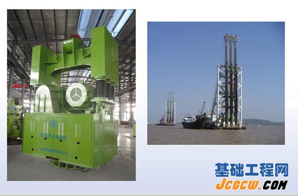 DZJ系列振动锤在我国的许多重点工程都得到了应用,如上海洋山深水港大规模使用该型振动锤进行海上振动挤密砂桩的施工取得了良好的经济效益。