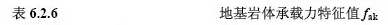地基岩体承载力特征值可根据岩石饱和单轴抗压强度、岩体结构和裂隙发育程度,按表6.2.6做相应折减后确定;对极软岩可通过三轴压缩试验或现场载荷试验确定其承载力特征值。