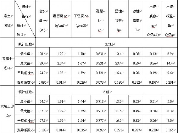 土工试验是对岩土试样进行测试,并获得岩土的物理性指标、力学性指标、渗透性指标以及动力性指标等的实验工作,从而为工程设计和施工提供参数,是正确评价工程地质条件不可缺少的依据。所有的工程建设项目,包括高层建筑、高速公路、机场、铁路、隧道等的建设,都与它们赖以存在的岩土体有着密切的关系,在很大程度上取决于岩土体能否提供足够的承载力,取决于工程结构不至于遭受超过允许的地基沉降和差异变形等,而地基承载力和地基变形计算中的参数又主要是由土工试验来确定的,因此,土工试验对于各类工程项目检测是不可缺少的。土工的物理力学性质表2。