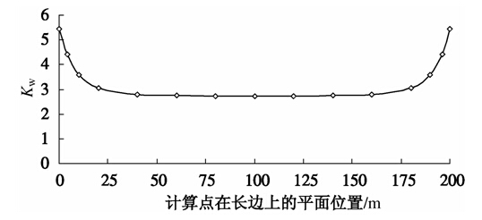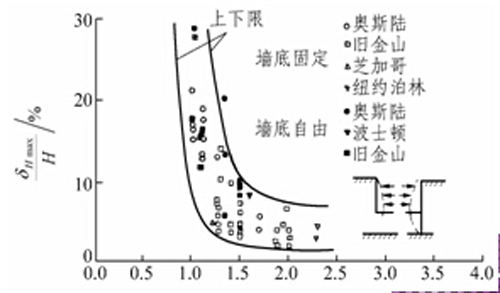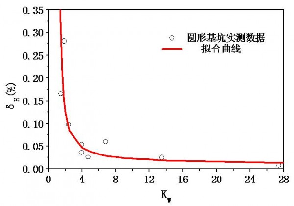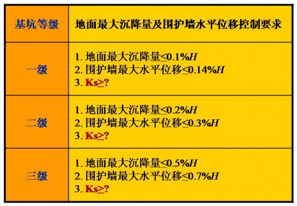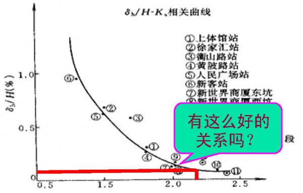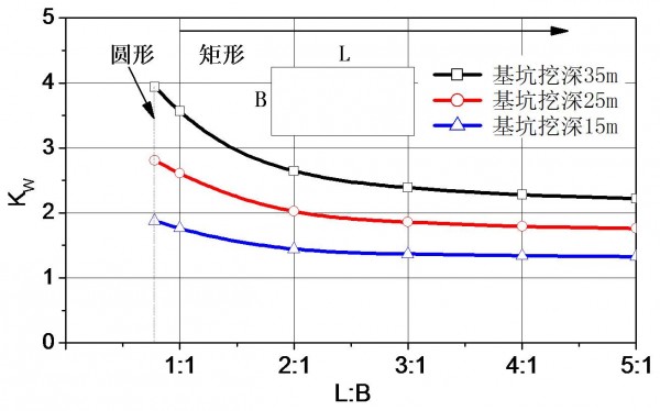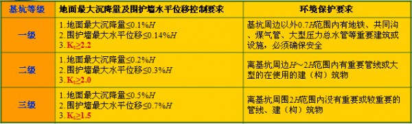 按《上海地铁基坑工程施工规程》地铁对环境保护等级分类的标准:一级,δH≤0.14%;二级,δH≤0.3 % ;三级,δH≤0.7 % ,则要求一级环境保护等级时,Kw≥1.9;二级基坑时,Kw≥1.5;三级基坑时,Kw≥1.2。