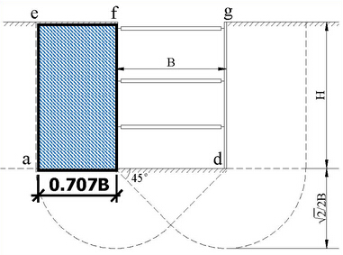 与Terzaghi基坑安全系数相反,现有规范采用的安全系数主要用于控制围护结构入土深度,普遍忽略了基坑尺寸、形状对安全系数的影响,在狭窄基坑设计时会造成浪费,使设计偏于保守!