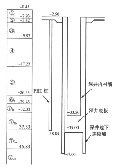 南水北调穿黄隧道工作井(直径18m,挖深50m,地下墙深76.6m)