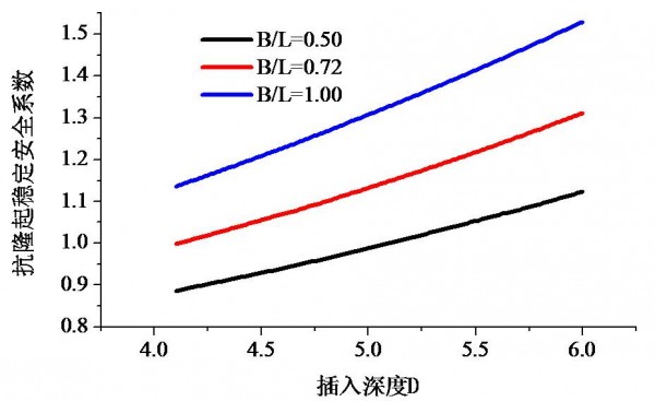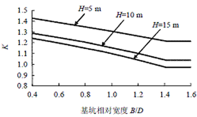 •尽管该系数可以考虑围护结构插入比的影响,但由于不再采用Skempton地基承载力计算方法,使其不能考虑基坑宽度、形状对稳定性的影响。