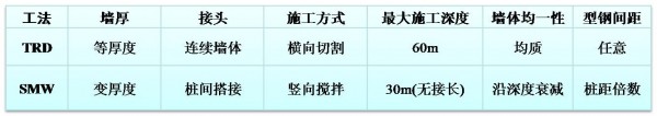 TRD型钢等厚水泥土搅拌墙 vs. SMW工法桩