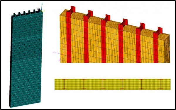 •墙体内插H700×300×13×24型钢,中心距900 mm,有效长度20.5m。