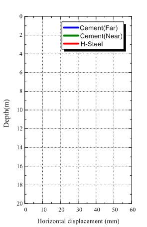 •测斜管埋设位置贴近型钢,因此应选取型钢附近的水泥土计算变形曲线。