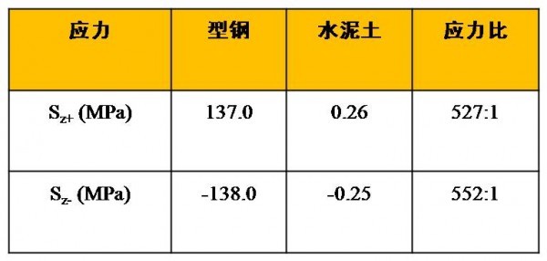 •型钢所承担的应力要远高于水泥土(应力比见表1,正为拉力,负为压力)。
