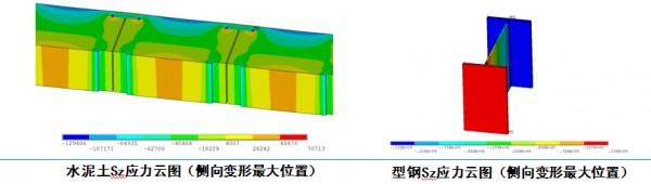 •取最大侧向位移位置局部水泥土和型钢单元,其Z向应力下图示。