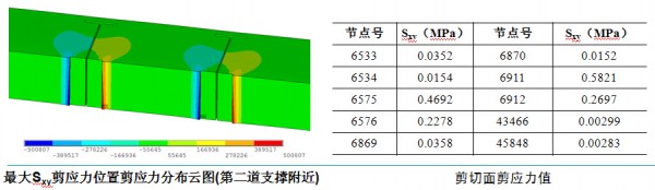 •剪切面的平均剪应力为Sxy,avg=0.166MPa<τck=0.2MPa,水泥土局部抗剪满足