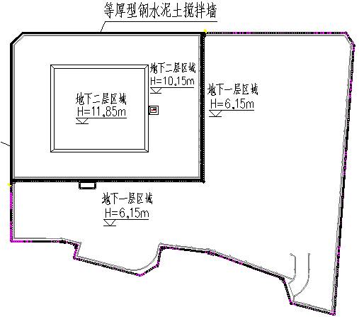 •等厚度水泥土搅拌墙厚度850 mm,墙深26.55 m,水泥掺量25%、水灰比1.5。