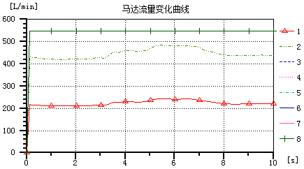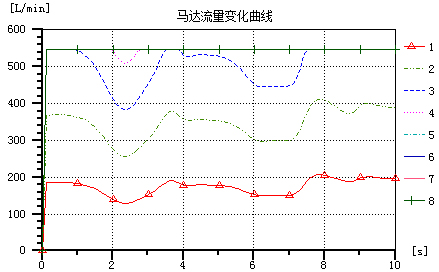 图5 马达流量随时间变化仿真曲线(3~8接近重合)