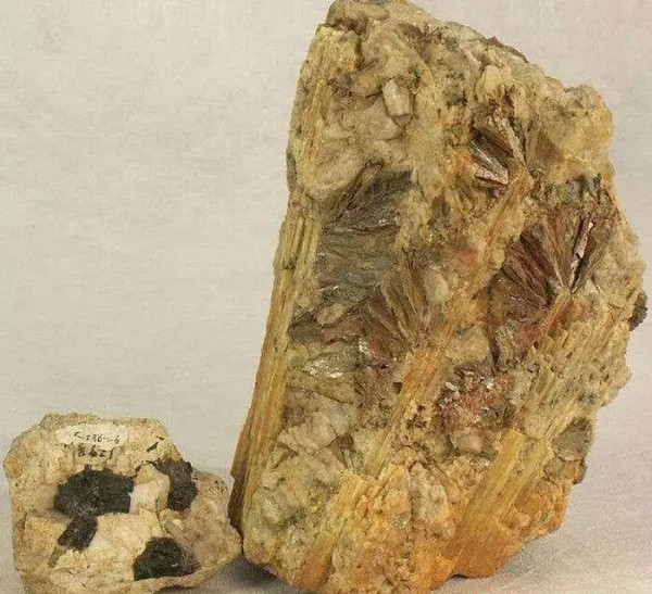 伟晶岩(箭头指示各矿物成分)
