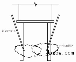 复合注浆法是将静压注浆法和高压旋喷注浆法进行时序结合发挥两种注浆技术优势的一种注浆技术。其先采用高压旋喷法对桩底进行加固处理,旋喷后再进行静压灌浆加固桩底及桩身,从而达到提高桩基础承载力的目的(如图4所示)。但是注浆浆液的可控性较差,不能定向定位,易出现串浆及跑浆现象,浆液易流失到加固区域以外的地方,难以增强土层强度,达不到加固效果。