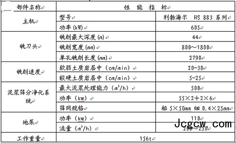 双轮铣槽机主要设备性能如下: