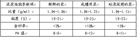 地下连续墙成槽施工过程中,采用膨润土泥浆进行护壁。膨润土质量参考原石油工业部、地质矿产部或API标准,原则上应达到石油二类或地矿乙级土标准。常采用钙土(Ⅱ级)的膨润土,其水︰膨润土︰Na2co3=1000︰80︰4。泥浆性能参数如下: