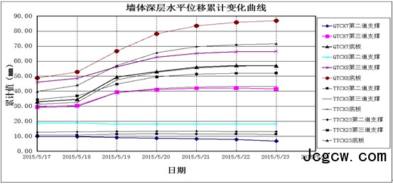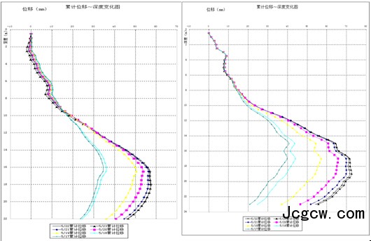 墙顶、土体水平位移