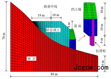 图3 桩墙联合支挡碎石填土路堤数值模型