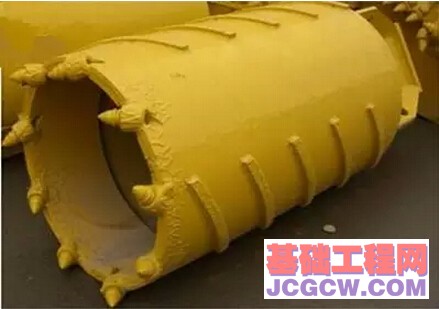 对于比较硬的基岩地层、大的漂石层及硬质永冻土层直接用螺旋钻头或旋挖钻头钻进比较困难,需要筒式环状钻头配合螺旋钻头及捞砂钻头钻进。分为取心环状筒式钻头和不取心环状筒式钻头。根据所钻地层不同又分为可用于风化基岩及永冻土层钻进的截齿式环状钻头及用于硬质基岩钻进的牙轮环状筒式钻头。取心环状筒式钻头结构特征及原理:斗体分内管和外管两层,外管上焊接主切削齿,内管上焊接副切削齿,内管下端装有承托岩心的合页片。