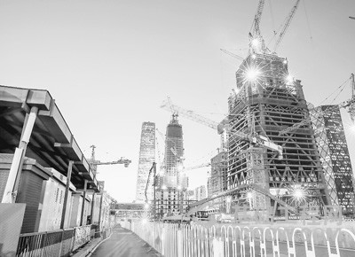 夜幕下建造中的中国尊