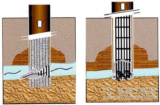 全回转钻机在溶洞施工中有其他施工工艺无法比拟的优势:它不需回填块石、不用另下套管。利用其自身良好的垂直度调节性能,钻速、钻压、扭矩的自动控制性能,可轻松的完成穿过溶洞的钻进任务。在进行溶洞中的砼灌注时,它是在套管内进行,添加了速凝剂的砼不易散失。且因钻机有强大的起拔力,还可以延时起拔。所以,它可很好的完成溶洞中的灌注桩施工任务。