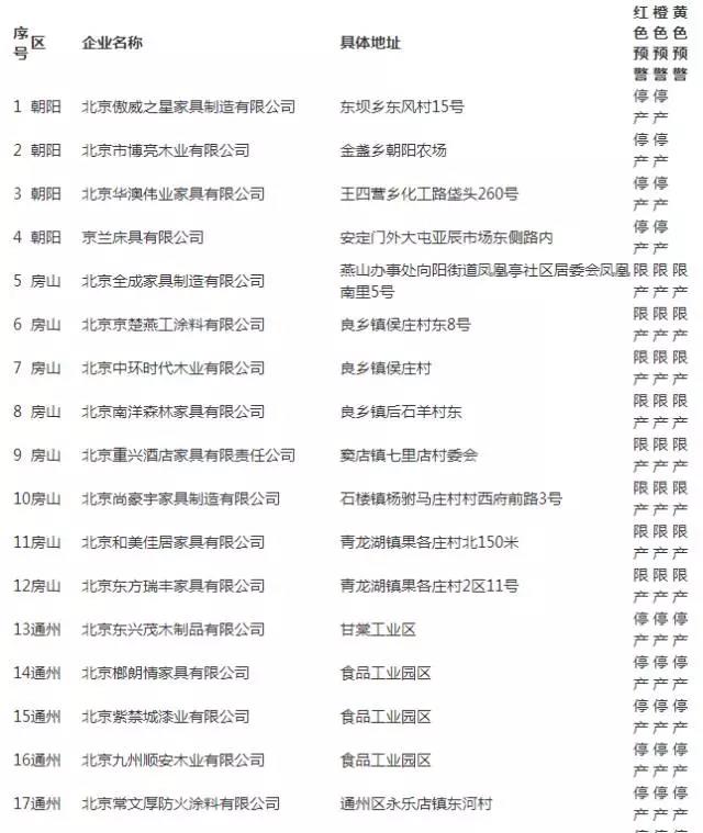 名单中,除北京京楚燕工涂料有限公司、北京常文厚防火涂料有限公司、北京永顺亮邦涂料厂等涂料生产企业外,涂料企业的下游产业也广受波及。家具企业限、停产数量达87家,记者调查了解到,作为传统的家具集散市场和生产基地,仅北京通州一地,在本次“限停潮”影响下,就有49家家具企业在名单内。