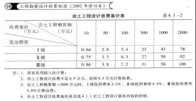 上个世纪90年代,中国房地产行业开始起步,到本世纪初房地产行业进入井喷发展期,直至2010年基本达到顶峰。在此期间,涌现出大量深基坑工程,同时派生出相关的基坑支护设计行业。基坑支护设计属于岩土设计范畴,原设计费收费可参考国家《工程勘察设计收费标准(2002年修订本)》,具体计价如图1所示。