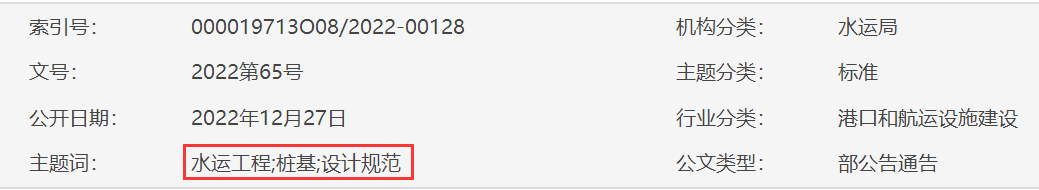 近日,交通运输部发布:关于发布《水运工程桩基设计规范》的公告。