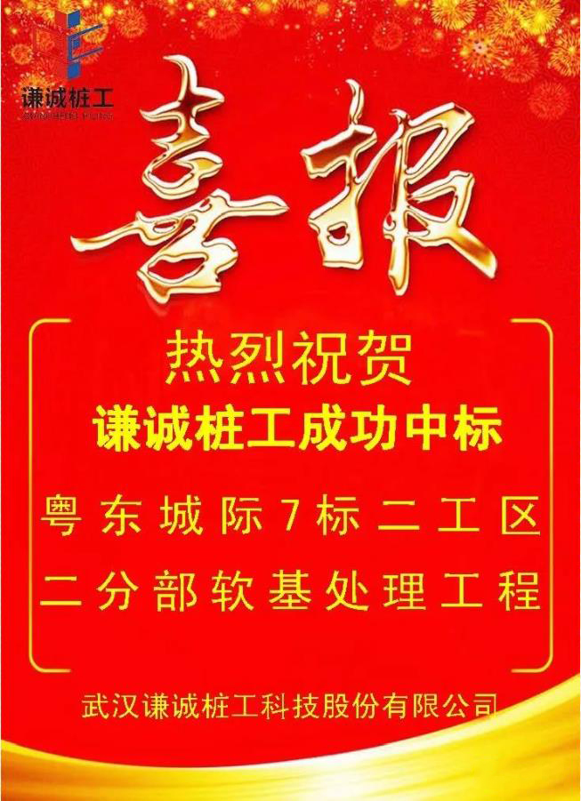 9月6日,谦诚桩工北京办事处传来喜讯:谦诚桩工就粤东城际7标二工区二分部软基处理工程与中铁济南工程技术有限公司北京分公司签订合同,正式参建该分部工程!