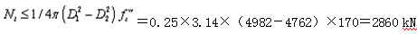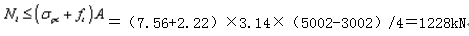 新老混凝土粘结强度试验研究和理论分析表明, K1=0.45~0.56,设计时若采用了微膨胀混凝土,则K1值可以适当放大。因此填芯与管桩的粘结力建议可用下式计算:
