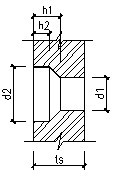 在不少PHC管桩作为锚桩的静载荷试验中,发现管桩端板与桩身预应力筋连接处亦是一个薄弱点,经常有端板拔坏的现象发生。端板孔口剖面详见图2,孔口最不利处为端板上预应力钢棒锚固孔台阶易产生冲切破坏,因此需进行孔口抗剪强度验算。同样以PHC B500 100为例(端板厚度ts=19mm),端板孔口抗剪强度设计值验算如下: