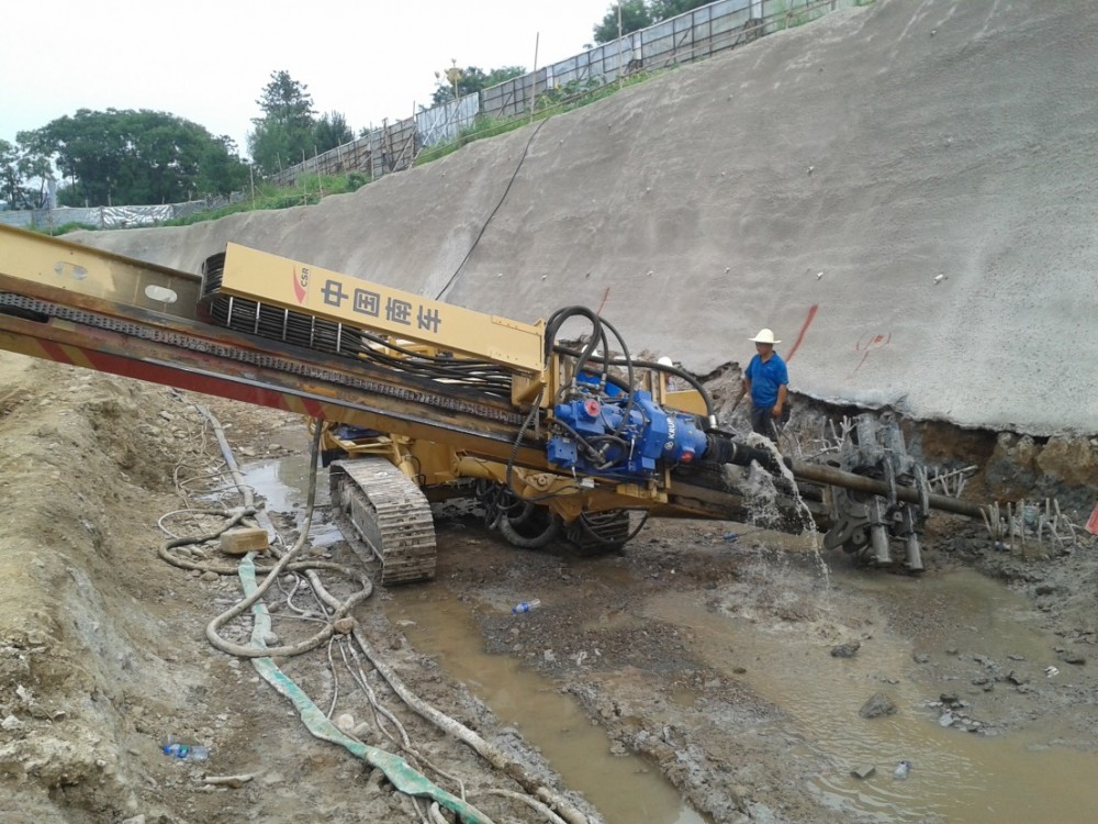 由于施工地层属于古河道沉积地层,地质条件较复杂,在锚杆的施工深度范围内包括砂石层、圆砾、砾岩,对施工造成了一定的影响,为了更好的发挥该钻机的性能,公司派出了由营销、技术、售后组成的专业服务队到施工一线指导客户使用,并负责客户操作机手的培训工作。公司的售后服务人员从钻机的配套设备、施工现场的安装调度、锚索孔成孔辅助用料逐步指导客户购置齐全,并仔细研究了地质报告,针对该地层提出了相应的施工方案,钻机成功进行施工,成孔速度每小时超过20米。客户对于售后服务人员表现出的专业素养给予了高度的肯定。