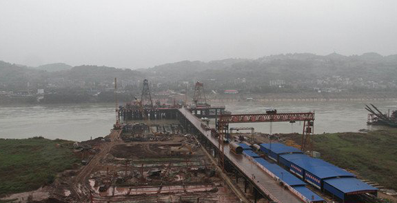 9月23日,在成贵高铁宜宾金沙江公铁两用桥施工现场,施工人员在进行桥墩下部结构的基础施工。据项目施工方负责人介绍,目前进行的是3-13号桥墩的桩基工程。其中控制性工程3号主墩位于金沙江江中心,预计11月完成桩基工程。
