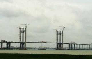 据承建该标段的现场负责人张经理介绍,大桥A1标段施工范围包括南岸陆地区引桥、南岸浅水区引桥六车道和南岸浅水区引桥八车道上部结构,长度5.913公里,南岸陆地区引桥长2732米。