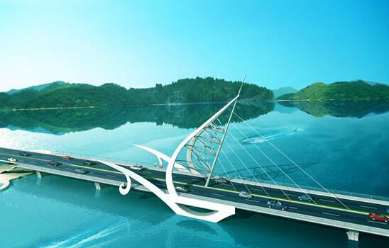 据介绍,栈桥的设计理念以“山水”为核心,巧妙利用周边的山水环境与生态、景观资源,通过抽象造型的桥梁艺术,营造“桃花源里水城”“龙脉”的巧妙构思。栈桥整体由车行桥、人行桥、朱雀广场三部分组成,以湖面的车行桥为青龙,东侧山体为白虎、玄武,仙人洞河汊汊口处的朱雀广场为朱雀,构筑了“青龙、白虎、玄武、朱雀”的风水布局意象,并实现了“山水合一,龙凤呈祥”的祥和美景,为柳叶湖旅游度假区创造了独特的风水旅游景点。