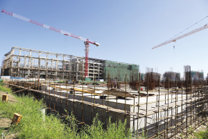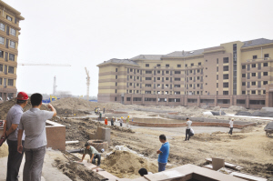来到天津中医药大学新校区建设现场,记者看到工人们正干得热火朝天,一栋栋教学楼、学生公寓楼已经封顶,校园新区初现新姿。目前,大学二期13栋公寓楼、1栋办公楼和1栋教学楼主体已完工,正进行外檐施工,计划年底前竣工,一期工程正进行桩基和基础建设。负责项目施工的技术总工张森对记者说:“项目整体布局是一标段在先二标段在后,一标段已进入装饰装修阶段;在11月中旬,二标段外墙涂料施工完成,到明年5月底二期工程竣工。”