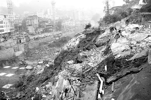 一位李姓群众说,滑坡发生时,正在睡梦中的他突然听见轰隆一声响,吓得衣服都没穿就跳了起来。到窗边一看,只见“老车站上边浓烟滚滚”,有人喊“屋垮啦”,有人喊救命。